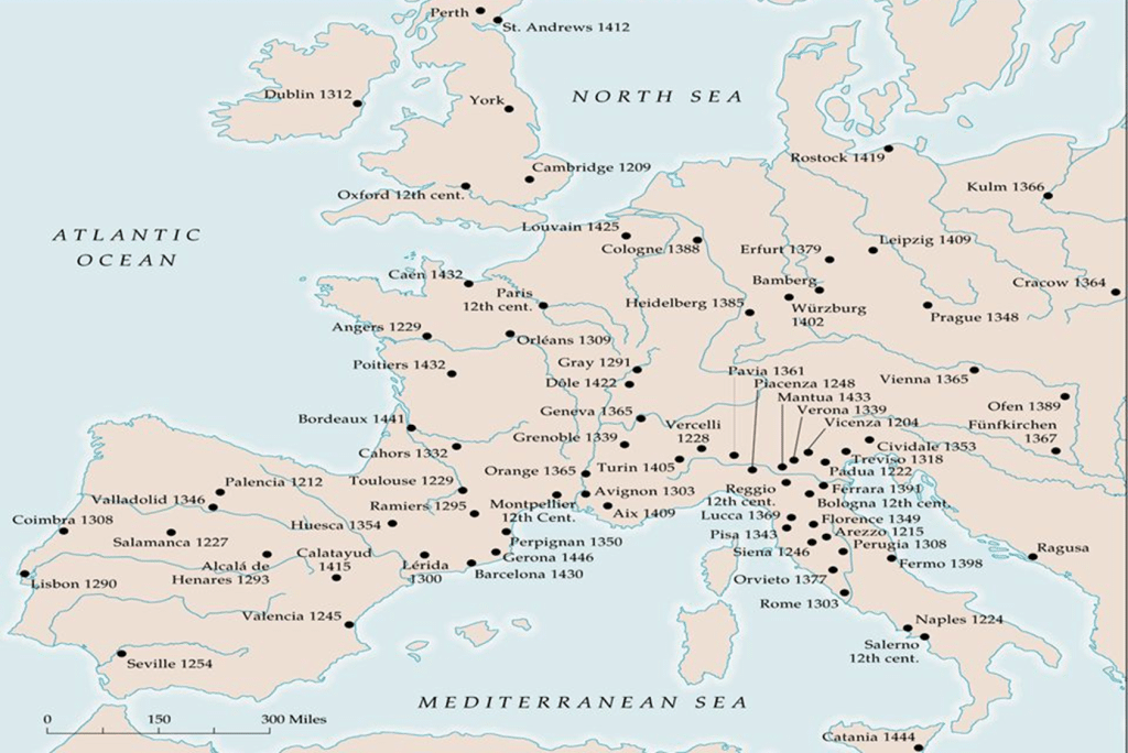 Rundt år 1300 var allerede rundt 20 universiteter. Rundt 1400 var det vokst til nærmere 35 og i år 1500 omkring 80, med vekst særlig i Tyskland og Italia.